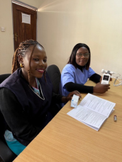 Along with these screenings, medications and exams, the nurses take time to do teaching with groups of the women, covering topics such as nutrition, birth preparedness, danger signs, and the importance of delivering in a health center, rather than at home. They stress the necessity of bringing the baby in for a postnatal check and then returning to start their babies in under-fives clinic. The moms are given a layette, including a onesie, hat and blanket for their new babies.